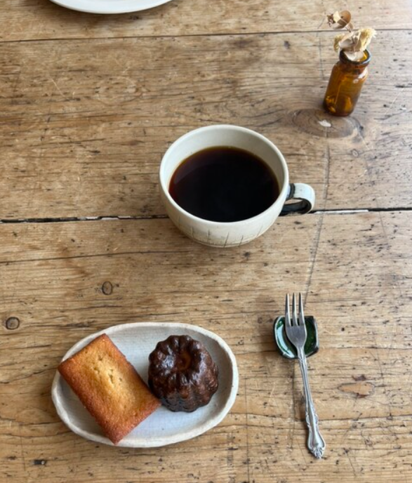 この珈琲とカヌレの組み合わせは、ゆったりとしたティータイムにぴったりで、散策や観光の合間に立ち寄るのにも最適です。