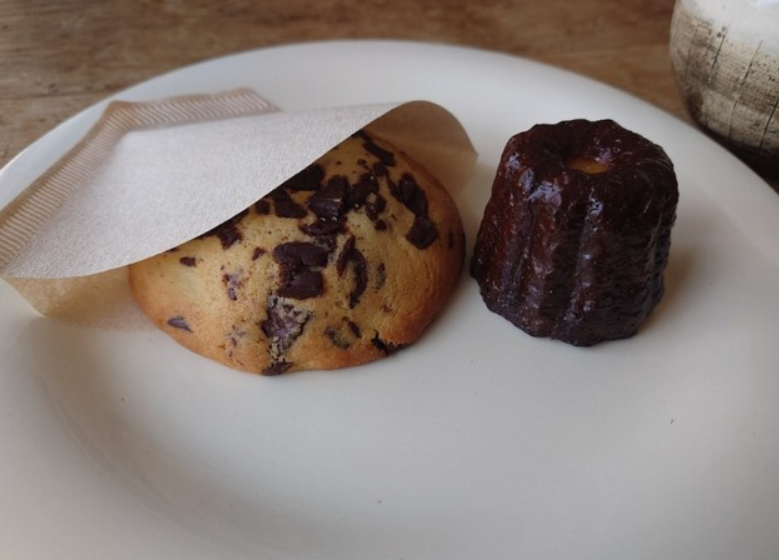 焼きたてのチョコチップクッキーの香ばしさと、外はカリッと中はしっとりなカヌレ。
