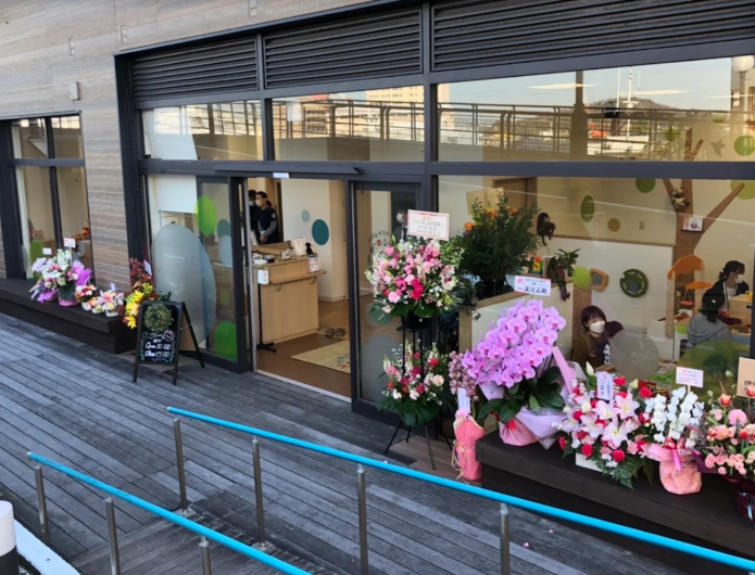 海が近く、景色が良くて良い場所です。 内装もお洒落で、絵が壁にあります。 パン屋・プリン専門店などもなり、お洒落でした。ただ、混んでいるときはうまく動けないほど人が居ます。土日の日中は混むので、それ以外に行くのがオススメです。 また、お土産を買うこともできます。